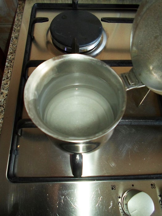 首先将盐水煮沸至盐完全融化。将盐水倒入容器,加入牛奶和液态奶油,稍待冷却。然后用手或勺子将酵母和糖融入液体中(虽然有点黏糊糊……但用手比用勺子效果好得多!:D)