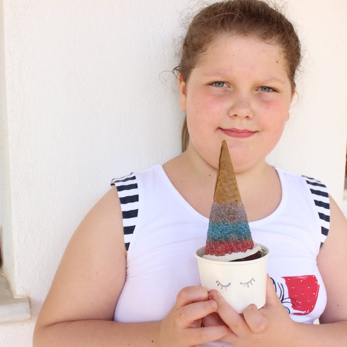 注:彩虹冰淇淋超成功,但配闪粉甜筒会太甜,所以分开装:要彩虹冰淇淋的给普通甜筒,要香草的给闪粉甜筒。