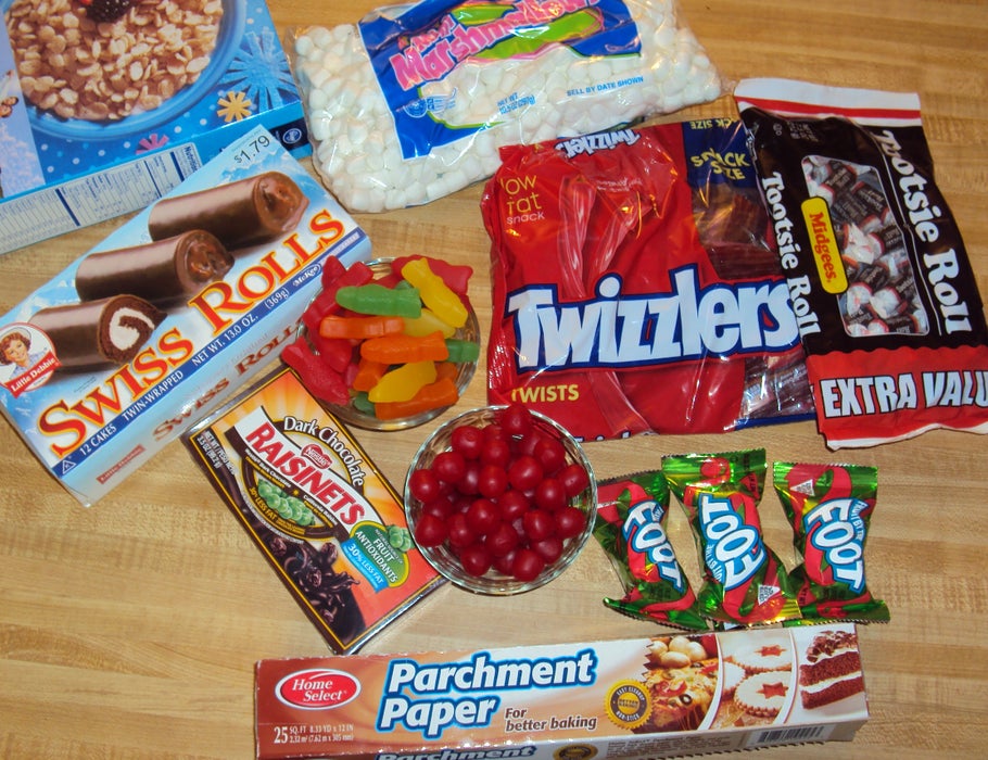 ~ 各类糖果("卷型"零食蛋糕可简化制作)