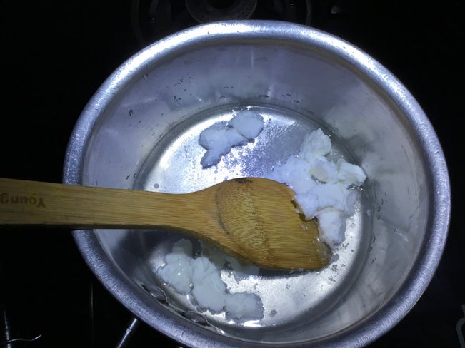 将水、砂糖和黄油一起煮沸。我用了自制黄油,你可以根据喜好添加1/4茶匙盐。自制黄油食谱参考:[Make-Clarified-Butter-Out-of-TRASH-Cream/](链接)