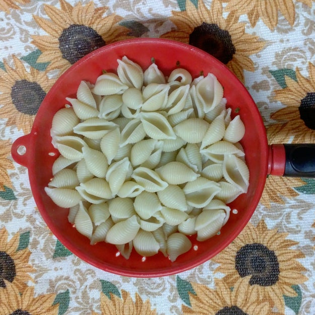 1. 煮沸一锅水,加入贝壳意面煮熟