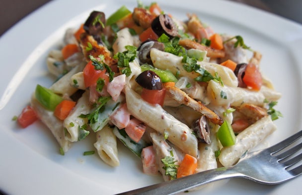 清爽版鸡肉酸奶通心粉沙拉食谱,15分钟快手健康餐