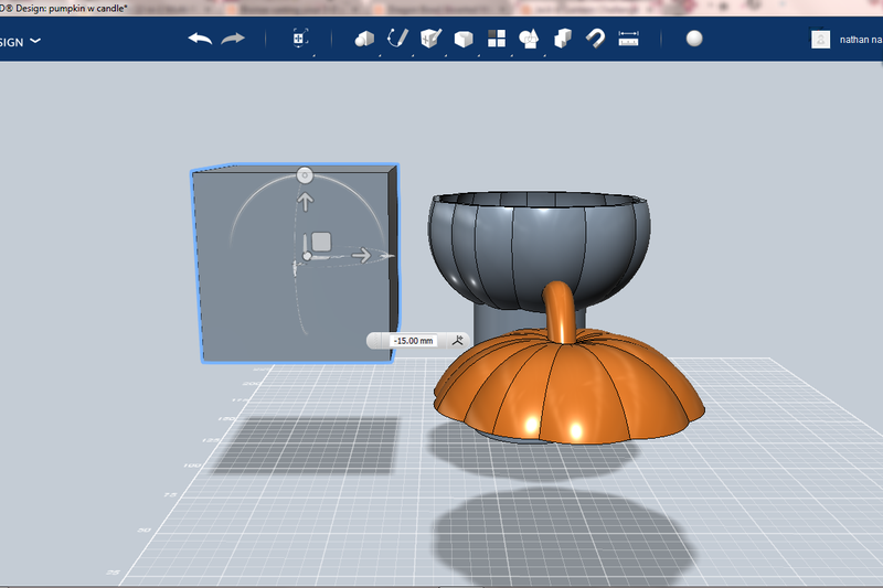 制作支架时,先在南瓜底部中央放置一个圆柱体。向外拉伸扩大圆柱体尺寸,再向下拉伸底部至所需高度后合并部件。在圆柱底部绘制圆形并轻微向下拉伸,最后放置立方体作为支架层,在其表面绘制矩形并半程拉伸。