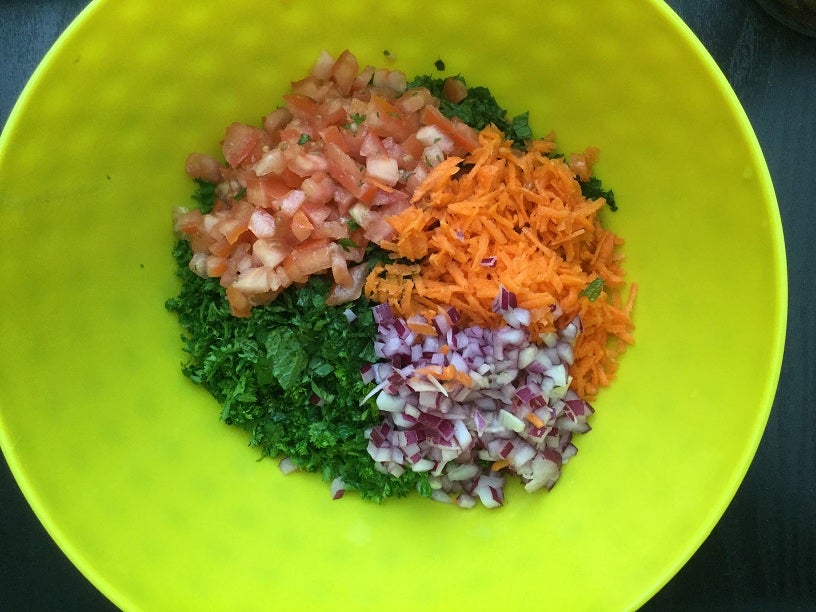 一道酸爽清新、口感脆爽的中东风味沙拉,以布尔古尔小麦/碎小麦搭配大量欧芹、薄荷和香菜等绿叶蔬菜,佐以橄榄油和青柠/柠檬汁的轻盈调味!完美适配任何主餐的配菜!