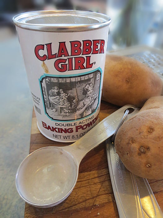 土豆浸泡时加入泡打粉,油炸时会形成微小气孔,使薯片更加蓬松酥脆!