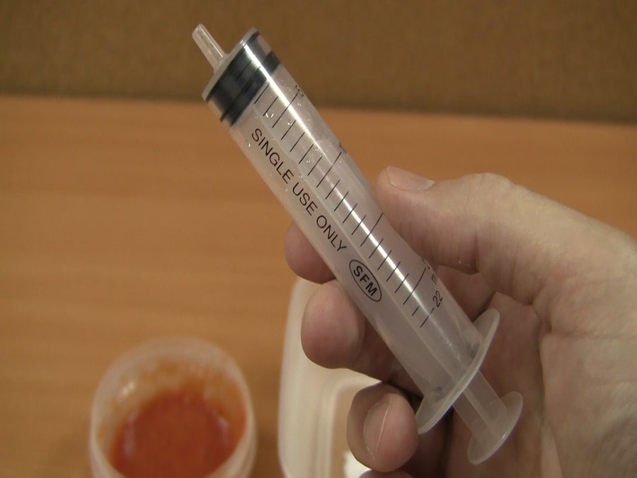 用最大容量的注射器吸取海藻酸钠番茄汁混合液。